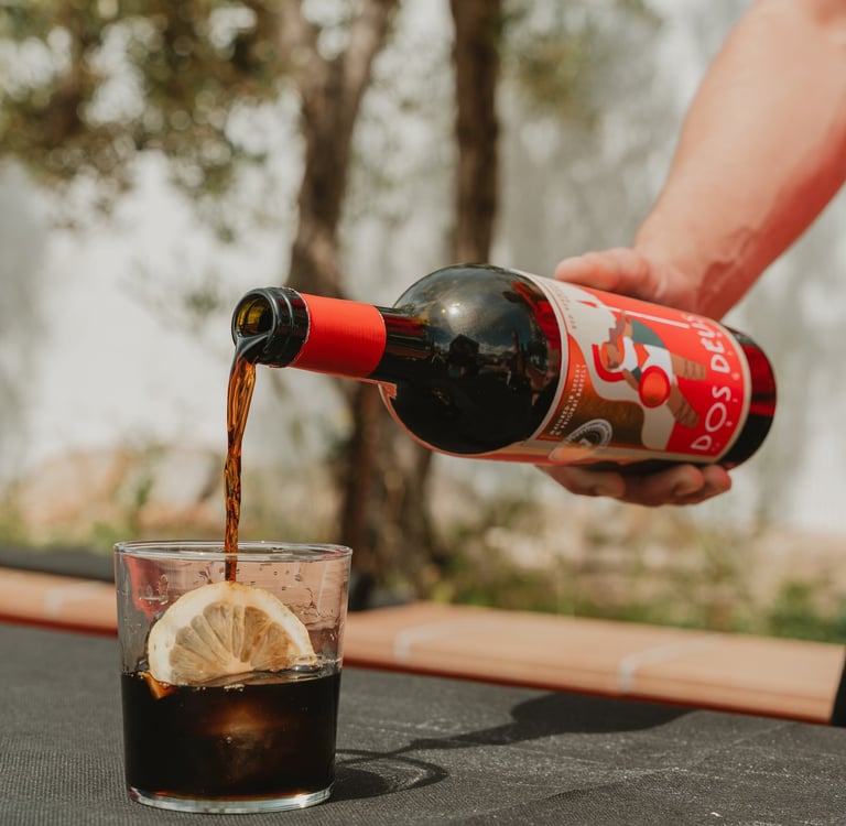 L'espai de vermut clàssic del mediterrani, amb aperitius i beguda per un moment distès, amb el vermut reserva del priorat Dos Deus